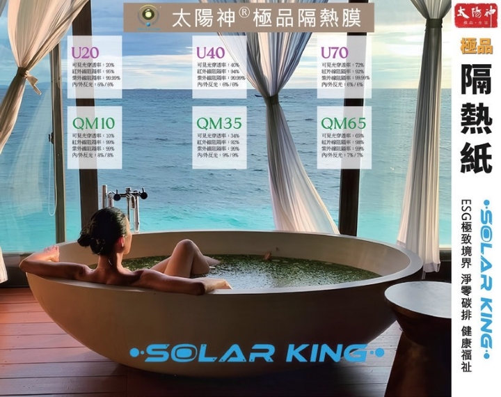 太陽神極品隔熱膜根據不同需求提供多種規格與型號,有效隔離阻擋紫外線與紅外線,提升舒適度並降低能源消耗。