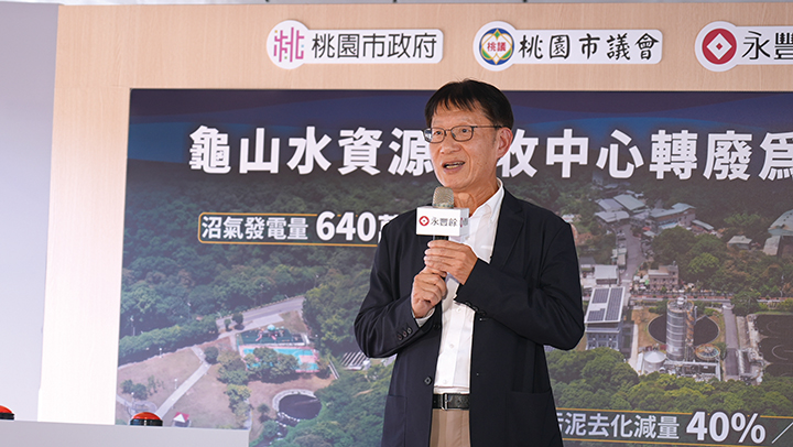 永豐餘投控暨豐川綠能科技董事長葉惠青表示,龜山水資源回收中心不僅能淨化民生及事業廢水,同時具備「創能、減廢、減碳」三重效益。