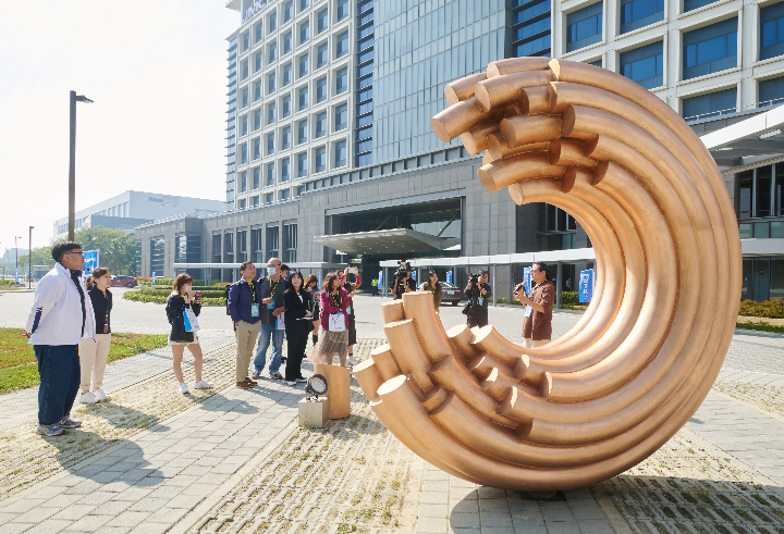 「其實,廢棄物不只能變成原物料或能量,還可以成為「藝術品」!」吳宗贀笑著說,矗立在創生中心外的大型銅雕作品「循環之律」,正是聯電回收廠內各處的含銅廢液、提煉出高純度的銅管後,再邀請在地藝術家進行創作的成果,透過跨領域合作,為廢棄物資源化創造更多元的可能性。