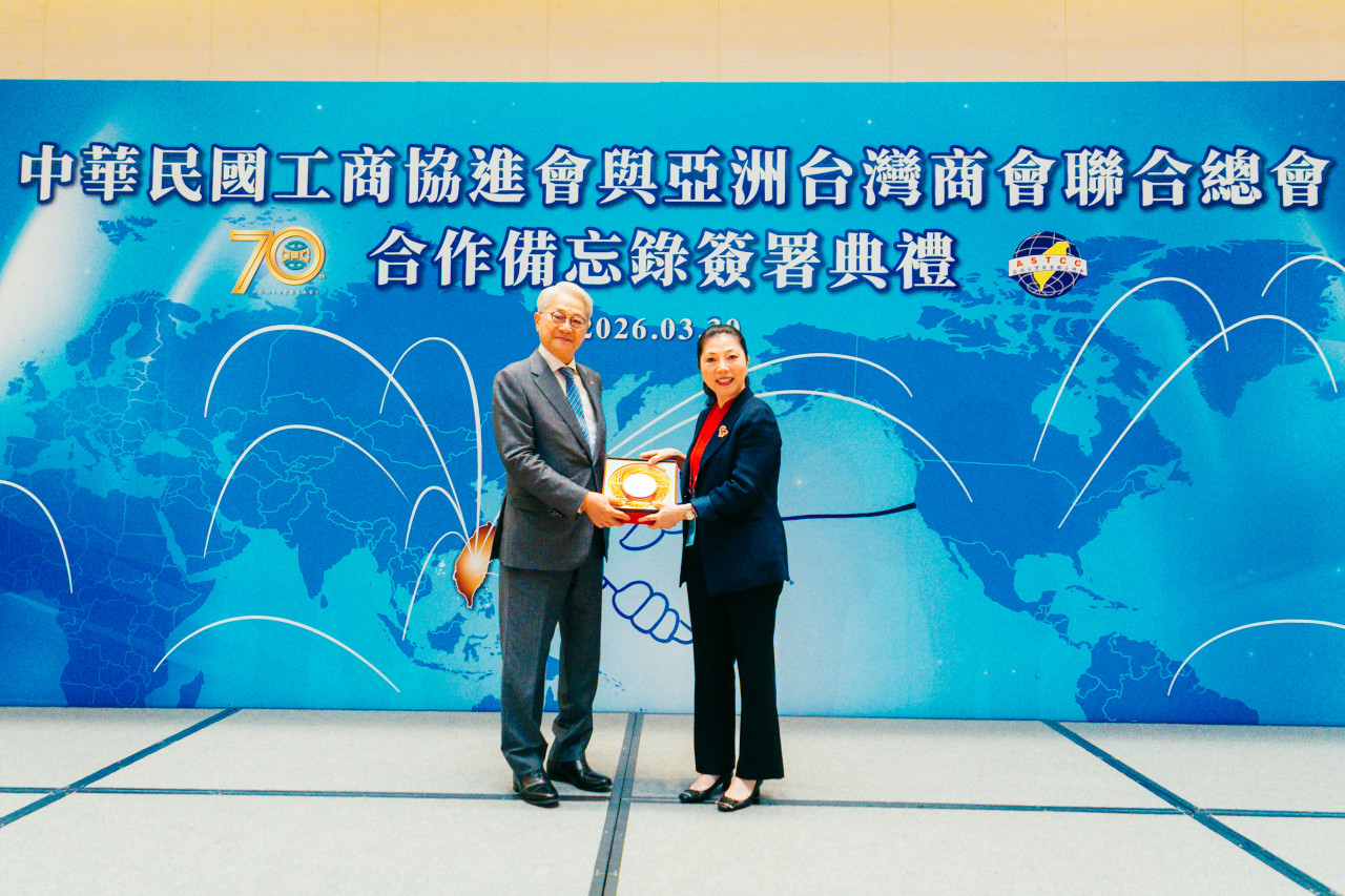 中華民國工商協進會(以下簡稱工商協進會)與「亞洲台灣商會聯合總會」(以下簡稱亞總)於3月30日正式簽署合作備忘錄(MOU)。雙方將以「商業無國界」與「醫療無國界」為核心目標,結合彼此資源,強化在經貿、供應鏈及醫療資源上的共享與鏈結,為遍布亞洲的台商及夥伴提供更全面的支持。僑務委員會徐佳青委員長及經濟部投資促進司張銘斌司長特應邀出席見證此重要里程碑。