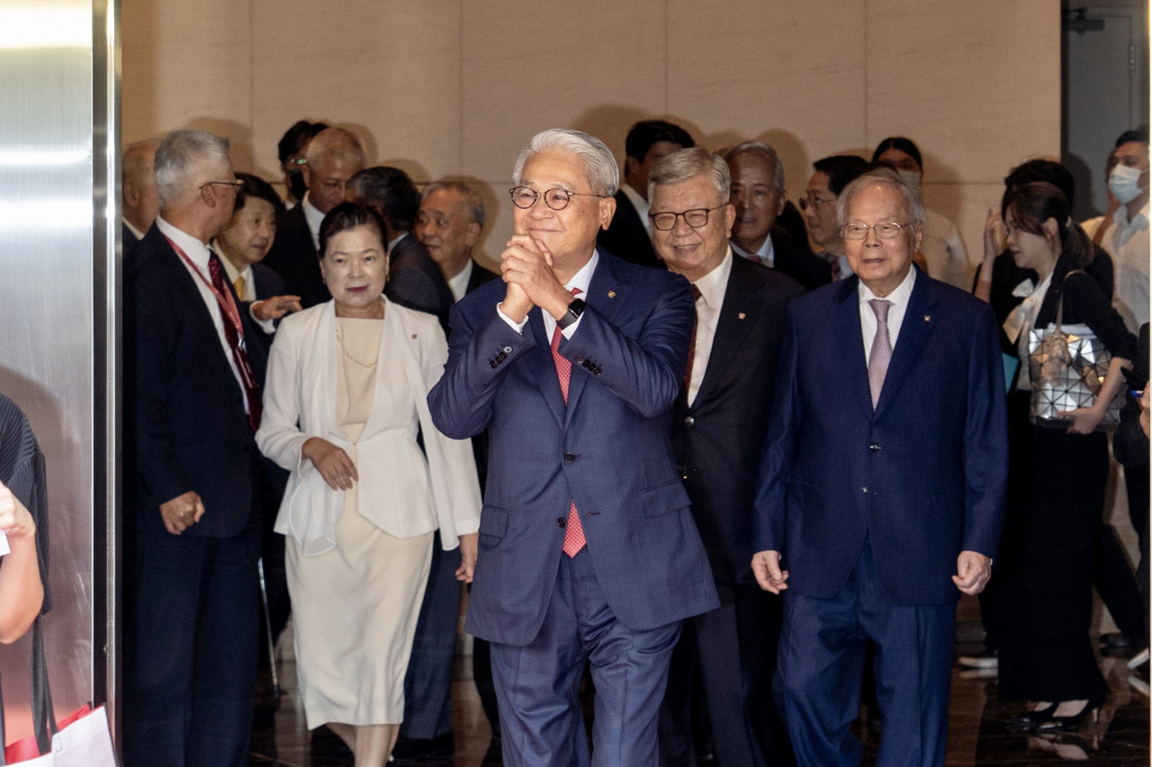 台新新光金控董事長吳東亮與其夫人彭雪芬出席揭牌儀式,兩人看起來心情非常好。(攝影:陳睿緯)