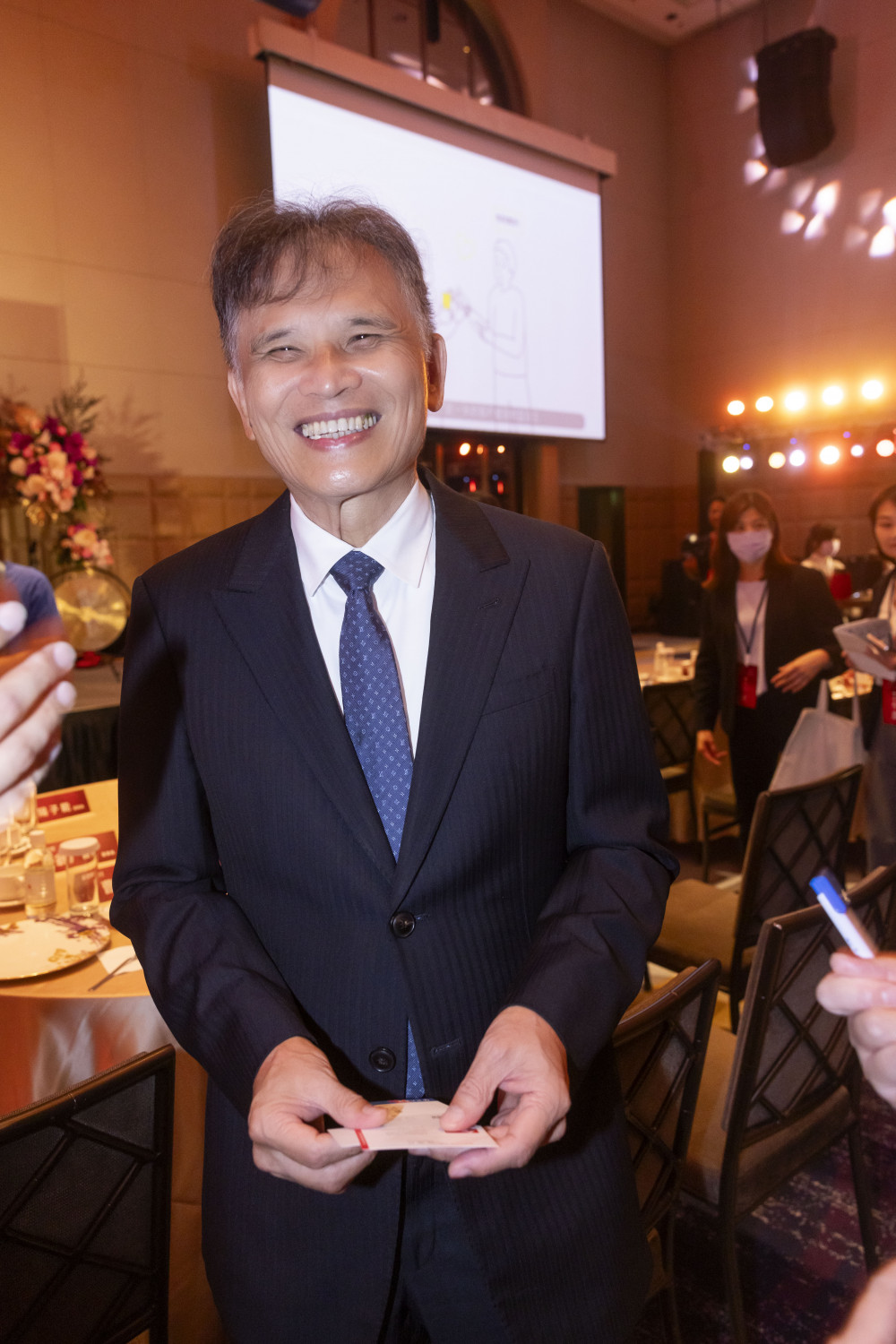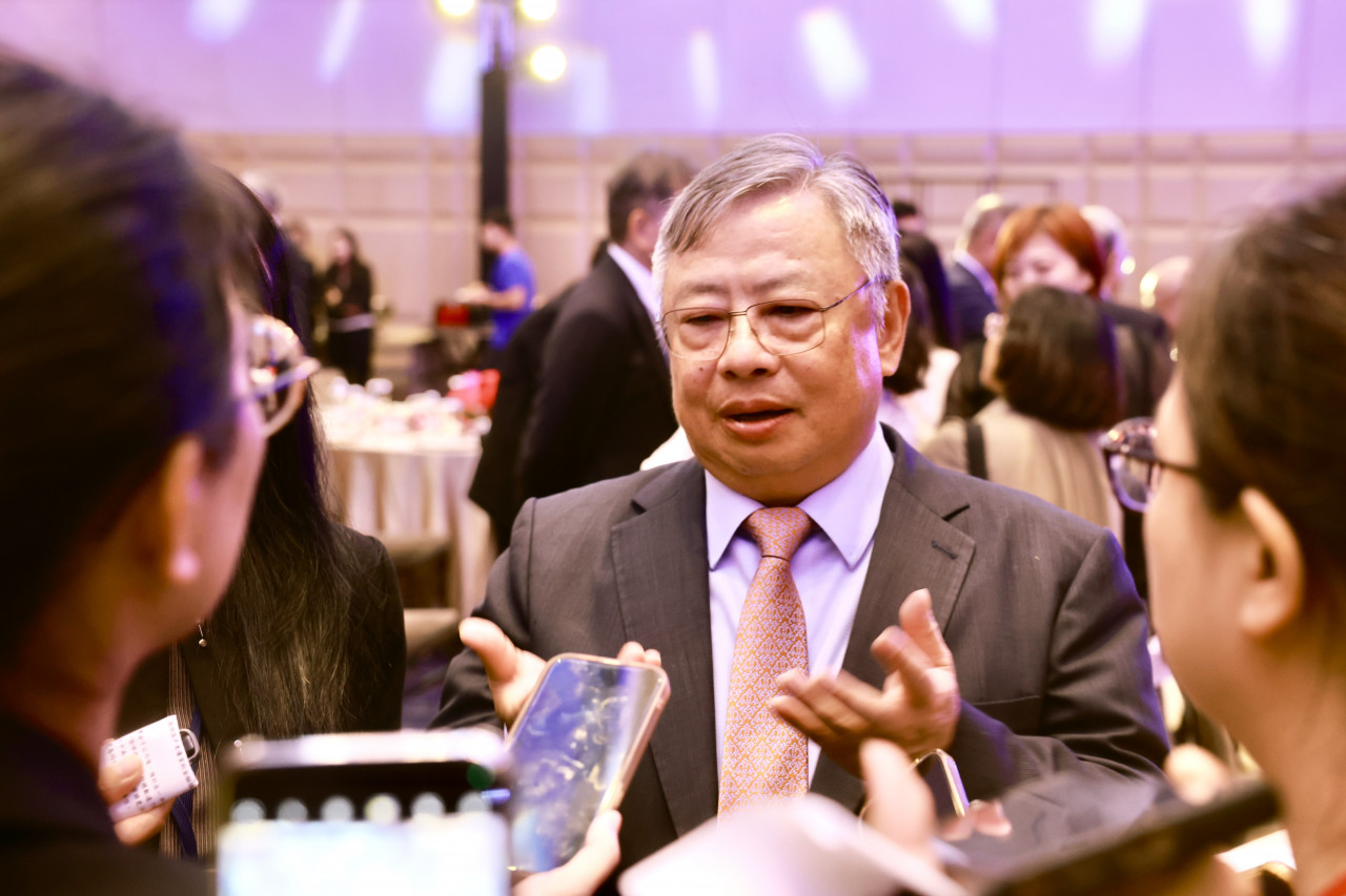 東森集團總裁王令麟也出席今日的慶祝茶會,與戴誠志的互動相當熱絡。(攝影:吳東岳)