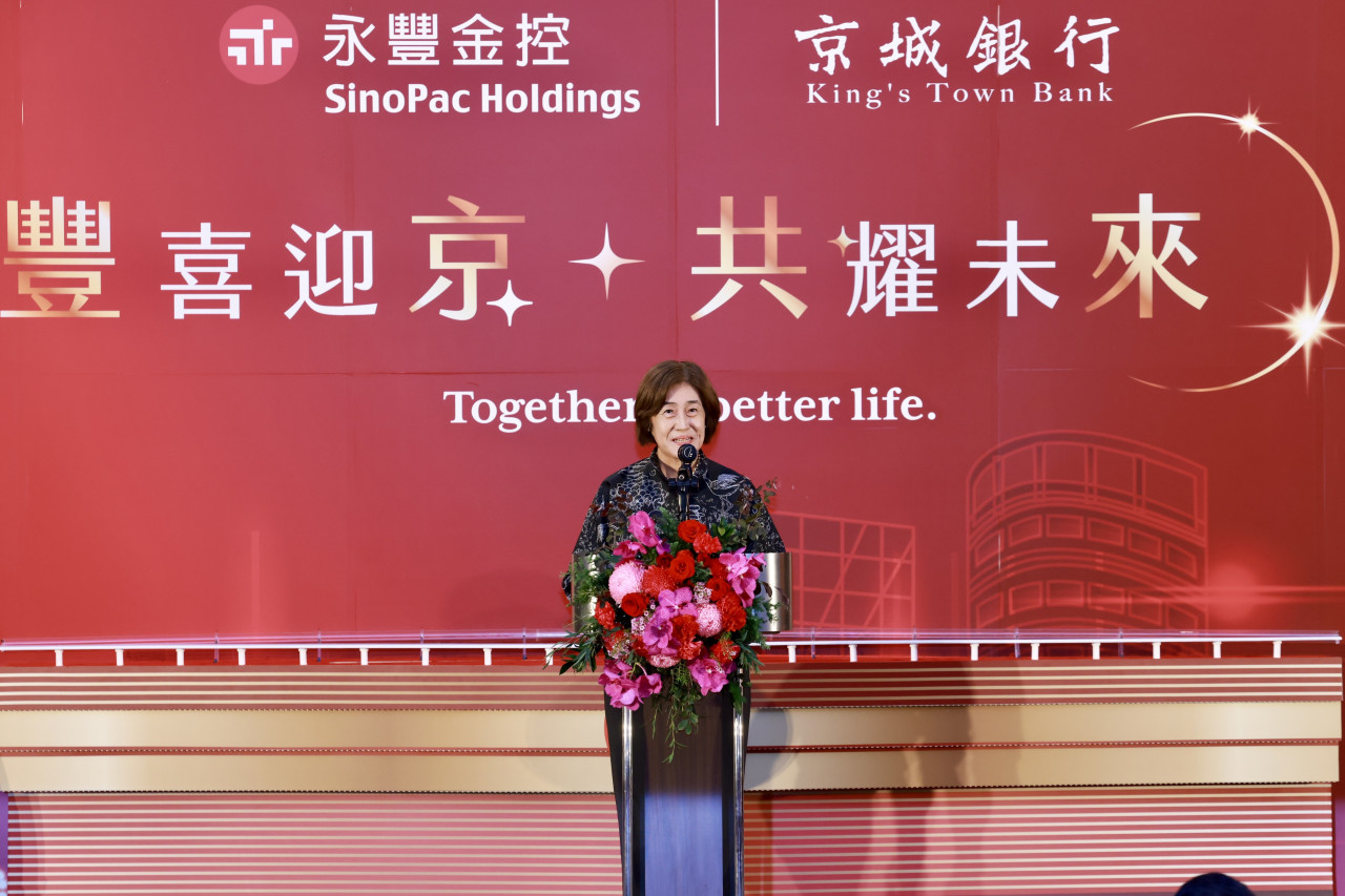 永豐金董事長陳思寬在致詞時講述兩家機構的淵源,指出雙方的前身機構皆於1948年創立,「在77年前,我們同年誕生,在77年之後,我們歡喜的結合」。此外,她也以股票代碼舉例「緣分」的巧合:「永豐金股票的代碼是2890,京城銀行是2809,數字是相同,只是排列組合不同」。