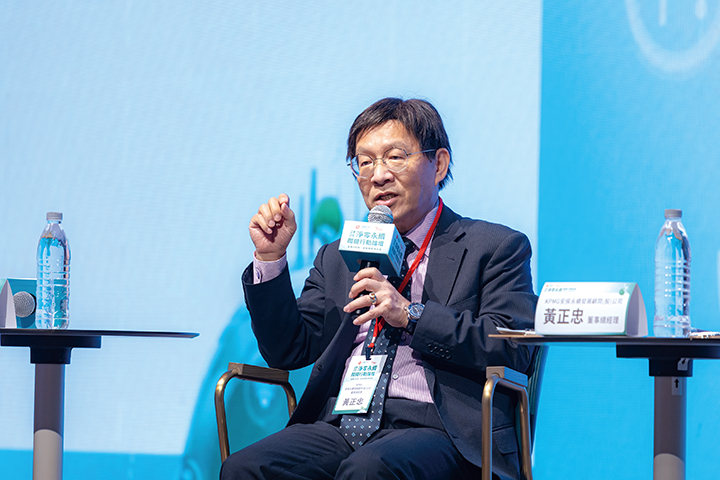 在座談環節中,KPMG安侯永續發展顧問公司董事總經理黃正忠首先點出:當前台灣ESG相關法令既多且雜,他因此向企業提出四點建議:包括要了解公司價值鏈,追蹤價值鏈中關鍵公司的永續作為,主動揭露自身努力,以及將永續工作常態化等,企業才能達到既定目標。