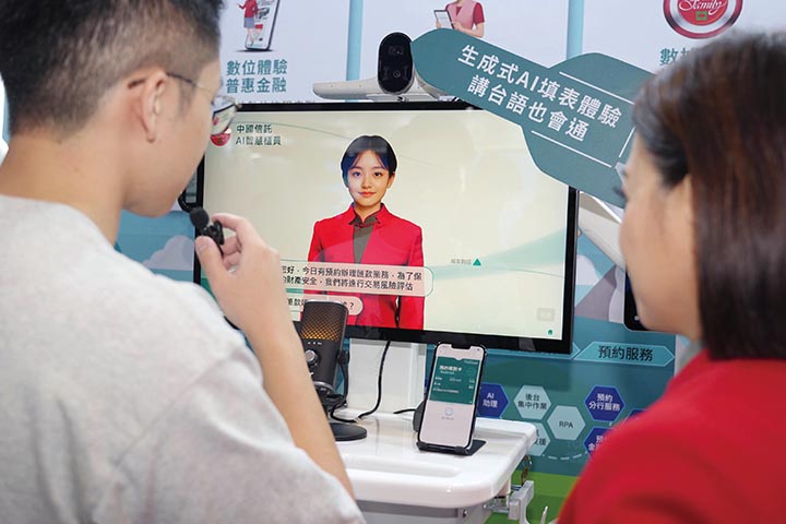 此外,中信銀行現場展示的「智能分行服務生態圈」,則融合數位體驗、AI智能以及數據打詐三大關鍵科技,打造「AI智慧櫃員」。這項服務協助需前往分行辦理業務的客戶提前預約,提醒時間及應帶文件,並與客戶對談、蒐集資訊,比對內外部防詐條件,若有需要,亦可通報行員、警察機關,共同攔阻詐騙案件發生。