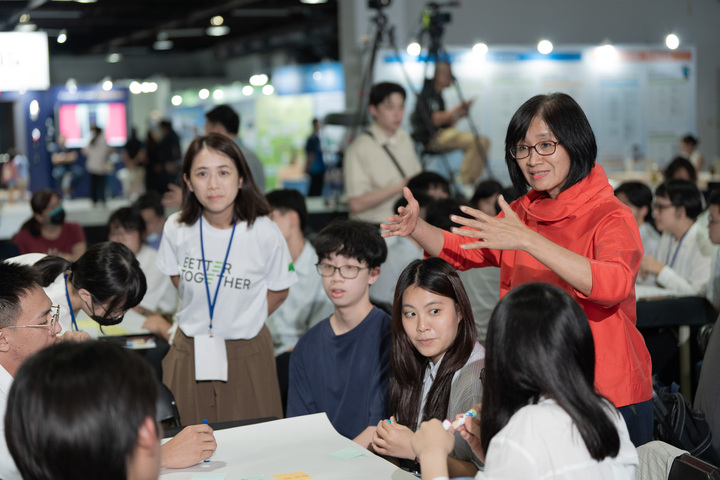 國泰金控投資長程淑芬(右1)於第6屆「國泰氣候變遷青年論壇」化身永續領航員,引領氣候倫理思辨的同時,也鼓勵青年發揮新世代創意與氣候行動力。(圖/國際氣候發展智庫 ICDI提供)