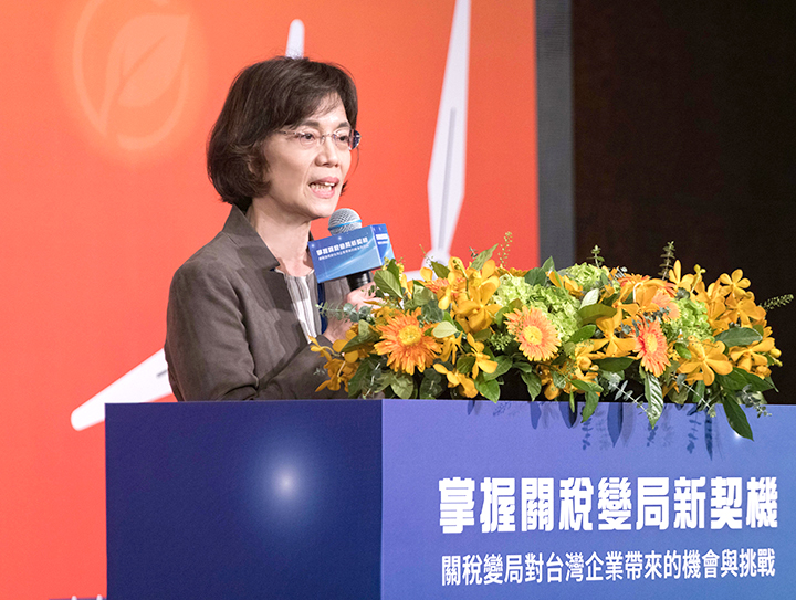 財政部常務次長謝鈴媛致詞時指出,面對全球對等關稅的新挑戰,政府也積極提出支持措施,其中在金融支持方面尤為關鍵。她表示為協助我國外銷企業因應關稅影響,中國輸出入銀行已提出兩項具體措施「提供貿易融資利息」與「輸出保險費用減免」,並配合政策推動產業重建與轉型。