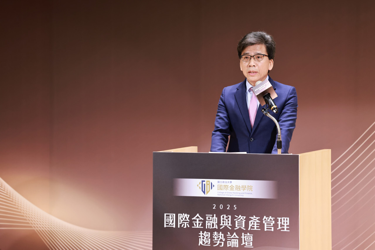 國立政治大學校長李蔡彥致詞時指出,近年全球金融市場風起雲湧,挑戰與機會並存。為回應變局,政大積極推動跨領域金融課程與國際合作,期望建立「金融知識生態圈」。他勉勵學生:「未來的金融世界屬於能跨域思考、靈活應變、理解國際脈絡的年輕人。」並強調政大將持續深化國際交流,厚植台灣金融軟實力。
