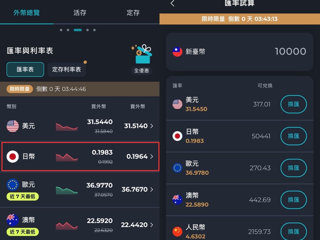 - 可即時查看最低匯率再進行換匯