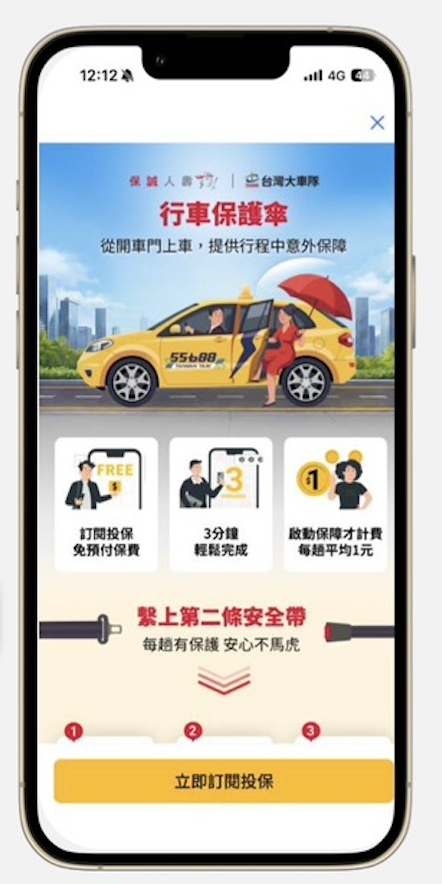 想在搭乘計程車時獲得專屬保障嗎?只要用55688 APP,3分鐘、10次點擊就能完成訂閱,之後每趟車都能彈性啟動保險,費用親民又便利。以下是詳細操作流程: