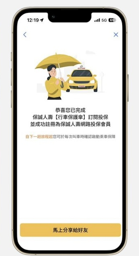 - 叫車時:每次叫車都可自由決定是否啟動保障,只需一鍵即可。