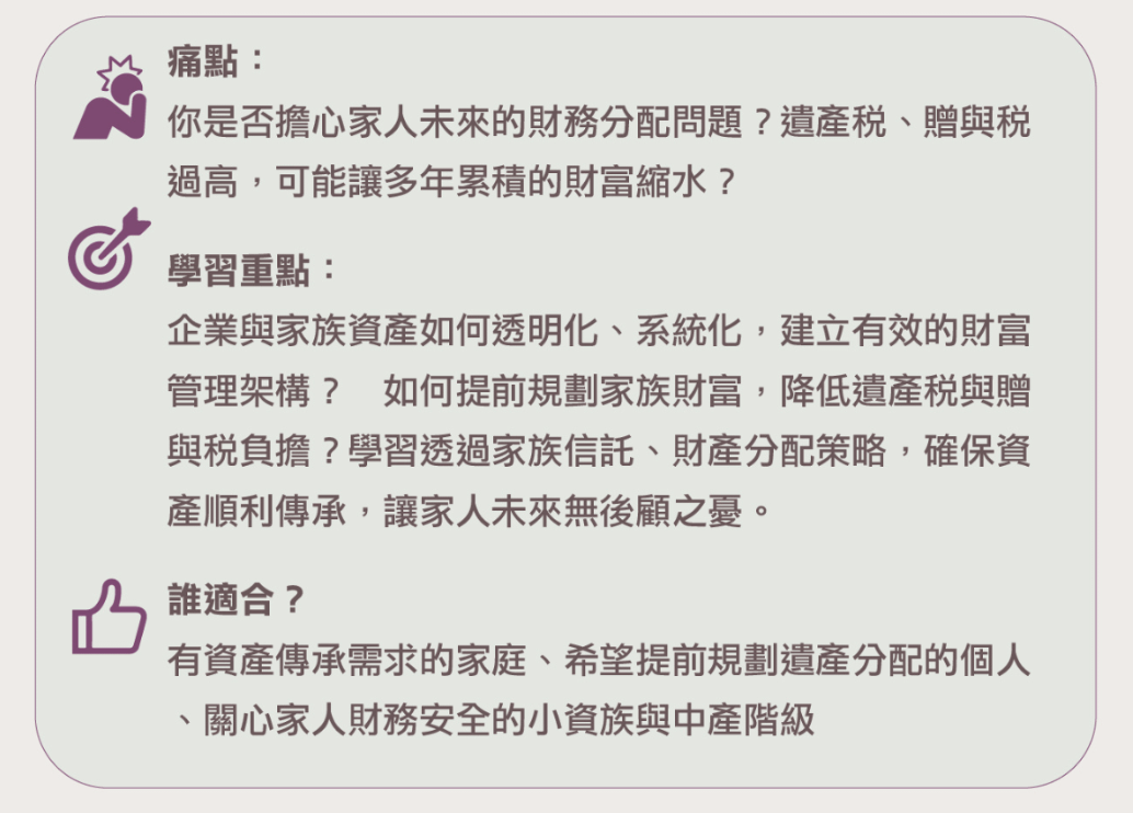 功能性設計:以信託/用益權/共同持有等工具,兼顧公平、控制權與節稅。