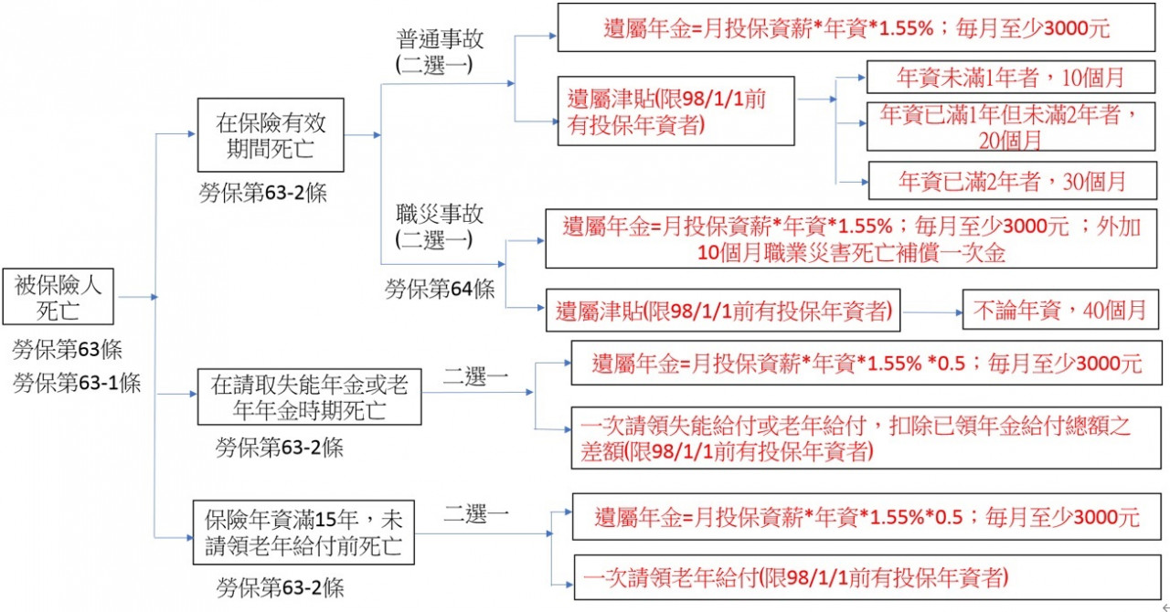 辛苦工作一輩子的勞工,可以平平安安活到退休,用勞保老年給付享清福,這是再好不過了,而當生命告終,符合請領條件的勞工家屬仍可領取遺屬年金,這些該有的給付常被忽略,特別呼籲辦理喪禮之後,千萬不要忘記申請。