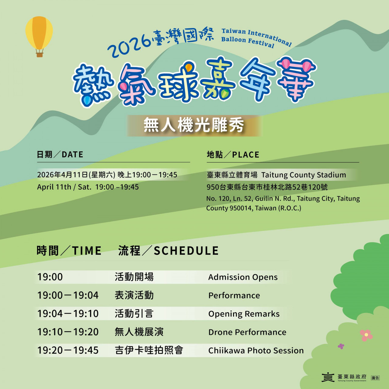 ▲2026台東熱氣球嘉年華光雕音樂會場次時間表。(圖/台東縣政府觀光處)