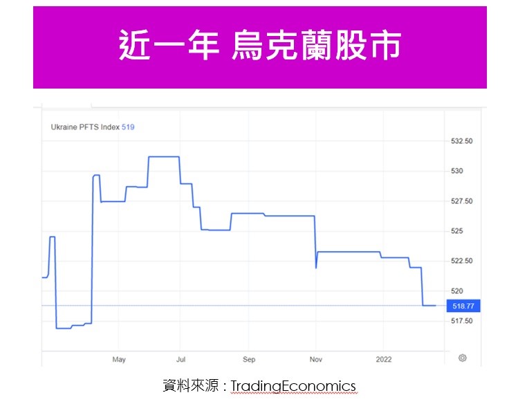 根據報導,俄軍可能全面入侵,烏克蘭的國防較為弱勢,可能「被併吞」,由此可知,烏克蘭的股市是主要風險商品。