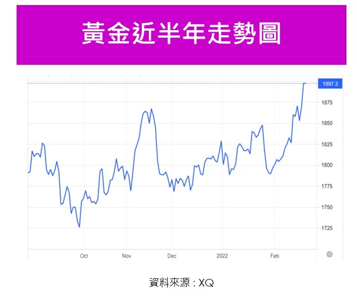 如附圖四,通膨升溫,美國聯準會(FED)於今年3月15~16日將召開公開市場操作委員會(FOMC),市場預期將升息,美國10年期公債殖利率走高(債券價格回檔,因債券殖利率與價格呈反向),如圖,1月俄烏衝突爆發之際殖利率一度跌回1.75%,後因消費者物價指數等數據偏高再衝過2%,2月再回到2%之下,但未繼續大幅走低,意味著避險資金有轉進但有限。