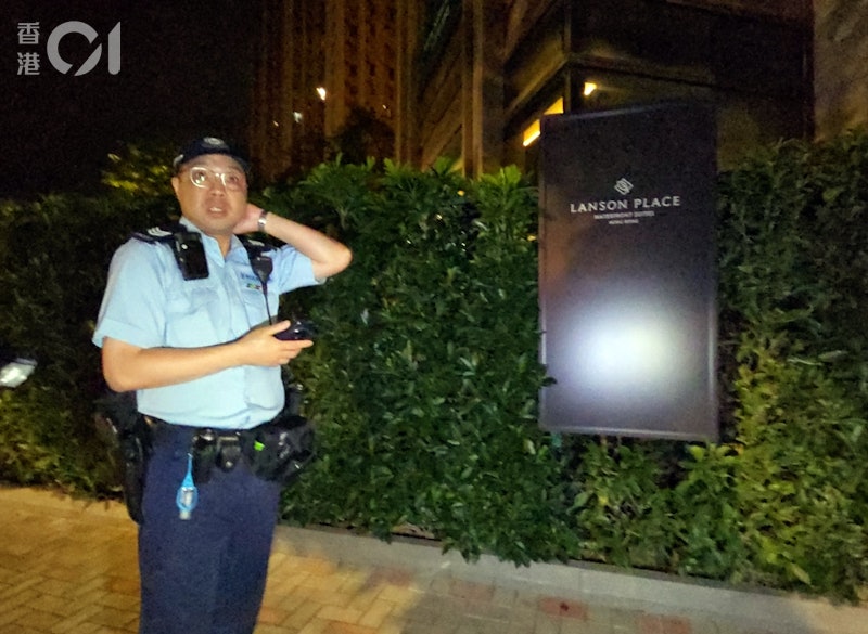 ▲有警員駐守在公寓大廈外。(香港01 記者陳永武攝)