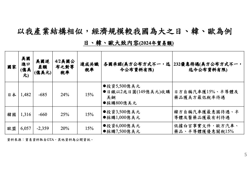 她強調,部分國家對外揭露的談判條件與細節,是因與美方已達成協議,而透過聯合聲明、美國白宮事實檔案或社群媒體等方式對外說明。