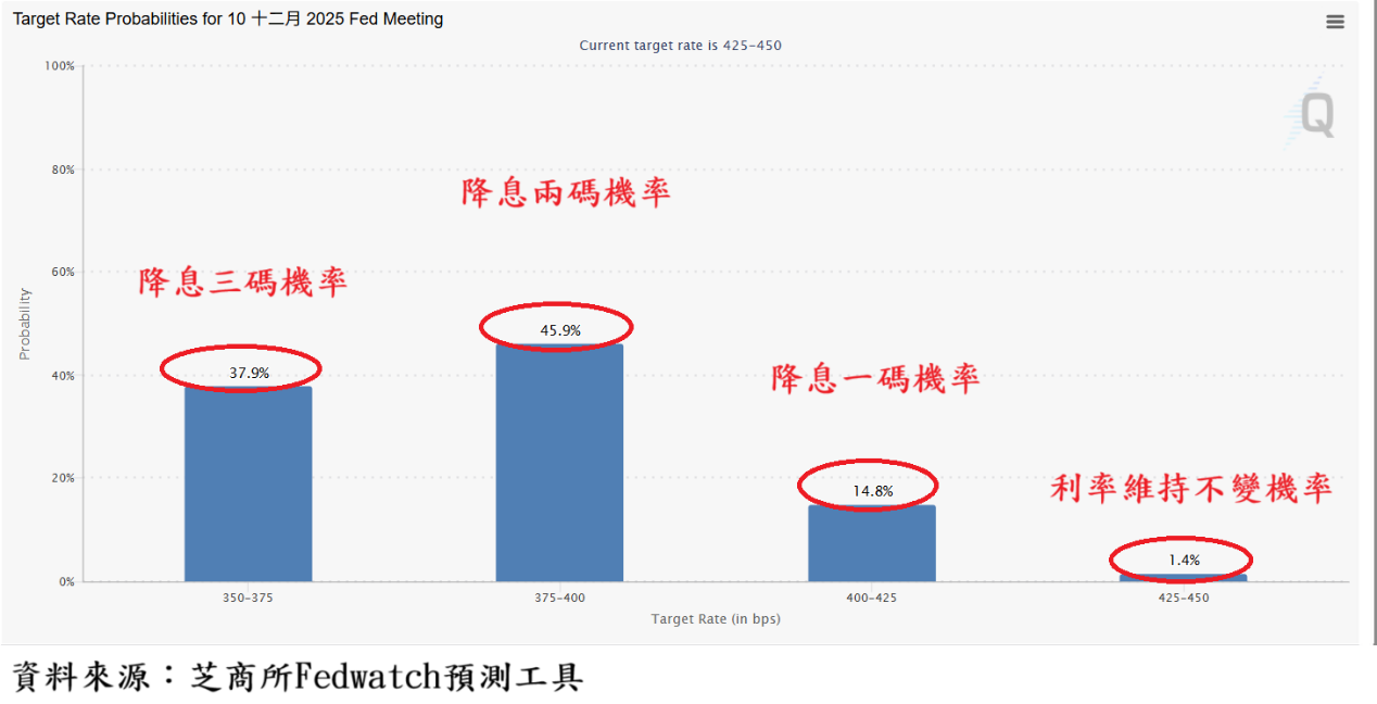 年底之前,聯準會僅降息一碼機率14.8%,累計降息兩碼(含)以上機率83.8%,累計降息三碼機率37.9%,利率維持不變的機率僅1.4%。由此可見,市場仍高度預期聯準會將自9月開始直到年底之前維持降息步調,幅度約兩碼或三碼。