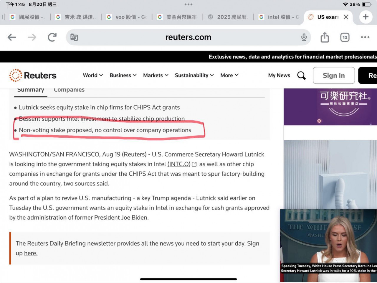 商務部長盧特尼克現在講的就是,在向這些晶片廠商拿到美國政府補助的要錢而已。英特爾因為沒有錢可以還,所以才會提出來用無投票權的特別股,簡單講就是無擔保的債權為之,如此而已。