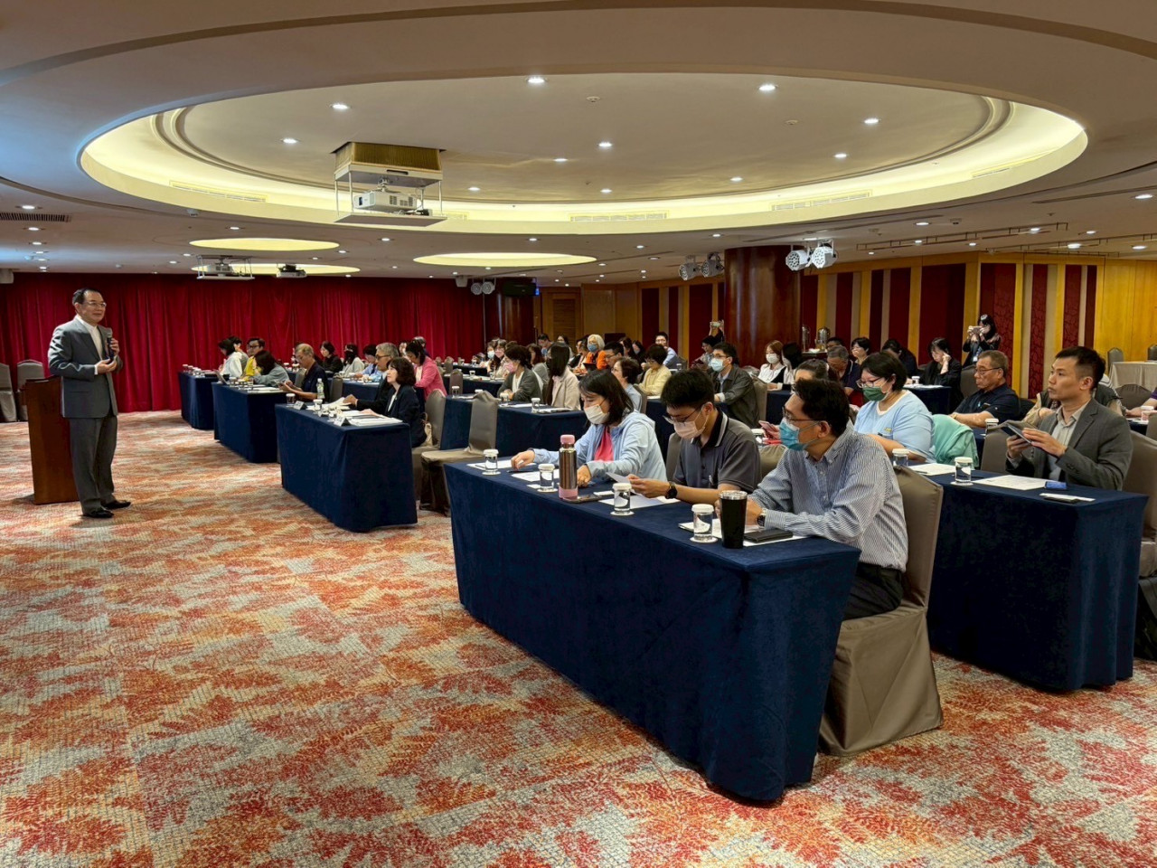 輸出入銀行台中分行於114年05月07日舉辦「貿易融資利息減碼暨輸出保險費用減免」金融支持措施廠商說明會,本行戴主席燈山開場致詞,王副總經理廷傑主講。