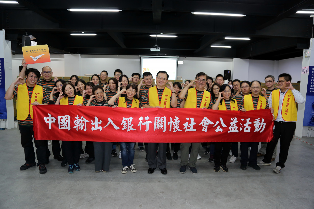 輸出入銀行戴理事主席燈山(前排右五)率領同仁參與中華安得烈慈善協會一日志工食物箱打包活動。
