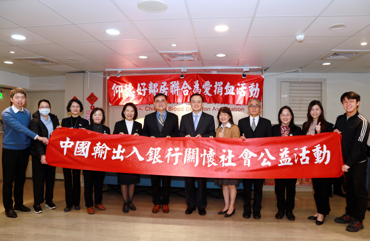 輸出入銀行戴理事主席燈山(前排左七)率主管出席捐血公益活動。