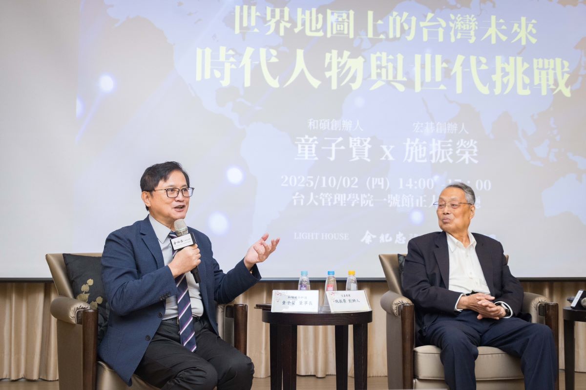 本月初童子賢接受余紀忠文教基金會與智融基金會邀請,參加「世界地圖上的未來台灣」系列活動的第一場「時代人物與世代挑戰」,與宏碁創辦人施振榮對談。
