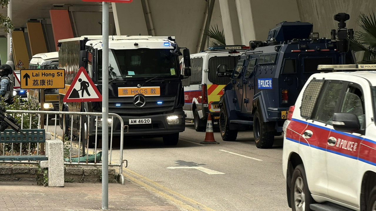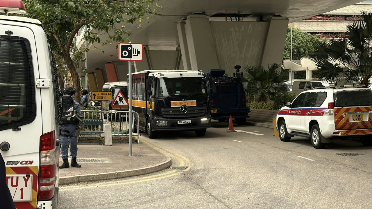 【08:30】相信載有案中被告的囚車今早8時24分抵達西九龍法院。