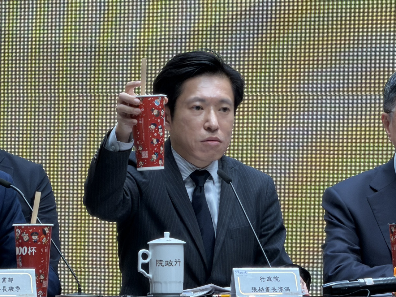 行政院秘書長張惇涵則秀出「珍珠奶茶」譬喻說明,這杯珍珠奶茶就是我方對美談判「有為有守」最好印證:杯中的茶葉「豁免關稅」,珍珠原料樹薯粉「零關稅」,使用的鮮奶未來更只有台灣乳產品會標示為鮮乳。