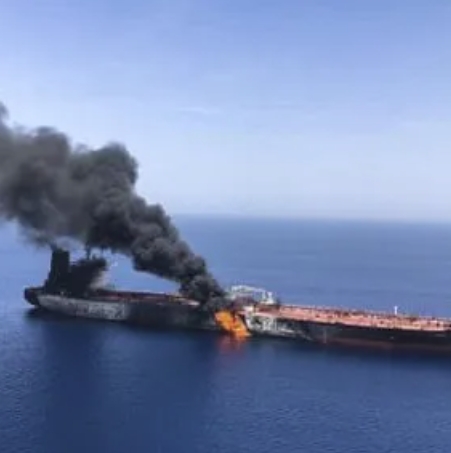 伊斯蘭革命衛隊打擊試圖通過荷姆茲海峽的3艘英國油輪和1艘美國油輪。(圖/翻攝自@visegrad24 X)