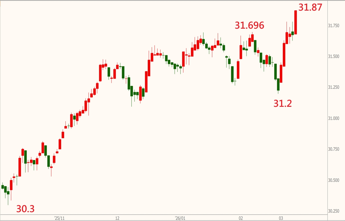 由於中東地緣政治衝突加上美股下跌,推動美元兌台幣匯價在3月9日最低一度觸及31.952,美金匯率創近10個月新高,是否表示台幣貶勢進入新階段?後續觀察重點有哪些?我們一次替大家整理解析。