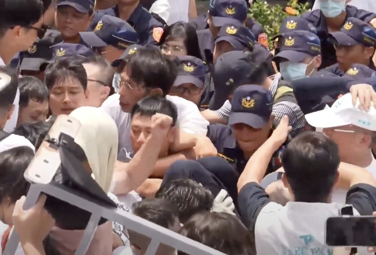 走讀過程中,除了有一名女警當場昏厥送醫,民眾黨的直播畫面更是拍到黃國昌勒住中正一分局督察組長陳育健的脖子,引發熱議。