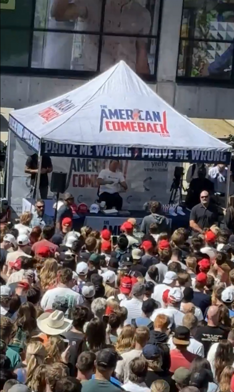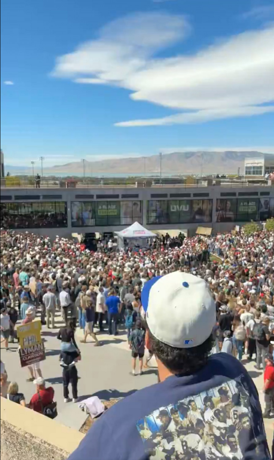 🚨#BREAKING: Watch as Hundreds of people gathered as Charlie Kirk spoke at a TPUSA event when gunshots rang out at Utah Valley University with him possibly getting shot. Chaos erupted as the crowd panicked, with people running for their lives pic.twitter.com/sFNoXPOVXG