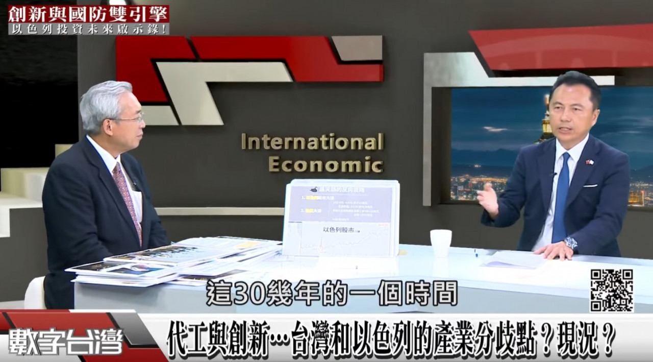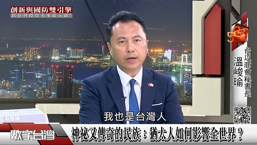 財信傳媒董事長謝金河主持的數字台灣節目,周日(14日)以「創新與國防雙引擎,以色列投資未來啟示錄」為題,邀請台灣以色列商業文化促進會秘書長溫峻瑜,與探討猶太人歷史的專書《世局》共同作者藍弋丰,提出他們對當今以色列不同面向的觀察。