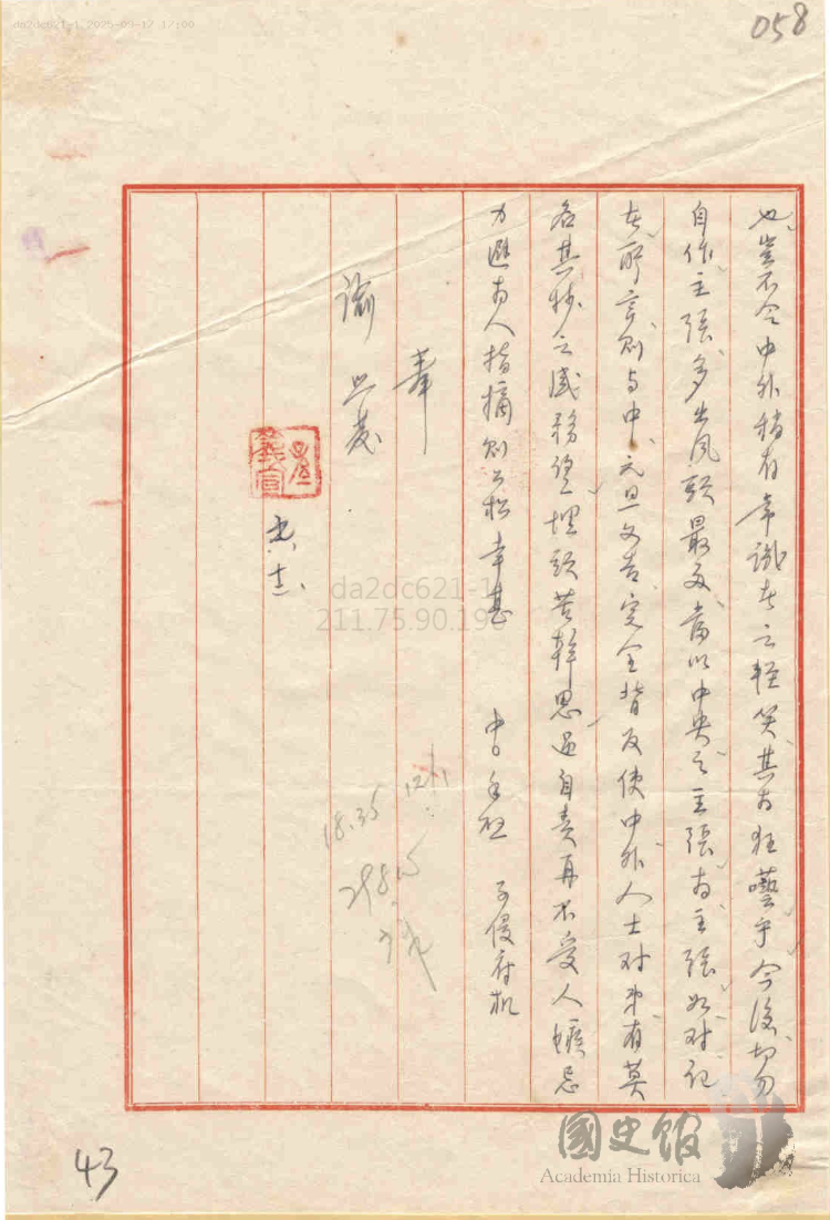引用資訊:〈交擬稿件—民國三十七年一月至民國三十八年十二月〉,《蔣中正總統文物》,國史館藏,數位典藏號:002-070200-00024-058