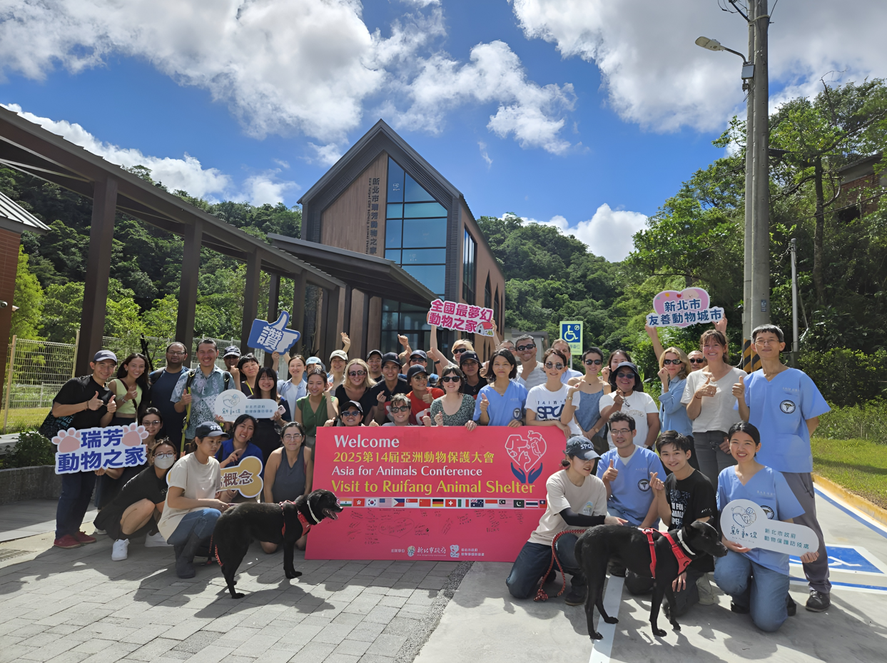 今年八月,「第二十五屆亞洲動物保護大會」首次在臺灣舉行,來自英國、日本、印度、德國、美國、韓國、澳洲等十七國、四十八位動保專業人士走進瑞芳動物之家,進行交流與實地參訪,對新北市的動保政策與設施設計給予高度肯定。會中,日本國際動保團體代表更當場認養一隻在園區待超過五年的三腳高齡犬「斑斑」,象徵國際認養新里程碑。