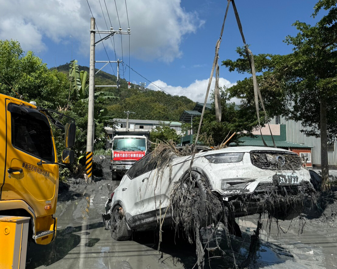 被泥流沖毀的車輛成為大型障礙物,急需處理。圖/裕隆提供