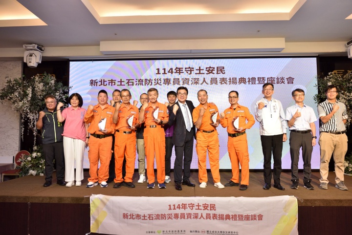 為感謝土石流防災專員多年來的無私奉獻與專業守護,新北市政府今(2)日舉辦「114年守土安民—新北市土石流防災專員資深人員表揚典禮暨座談會」,由劉和然副市長表揚頒發服務滿20周年的獎座,共邀請150位土石流防災專員及區公所防災夥伴公開肯定防災專員長期守護社區、降低災害風險的卓越貢獻。典禮現場氣氛隆重且溫馨,不僅凝聚了各地專員的向心力,也展現市府對社區防災工作的高度重視。