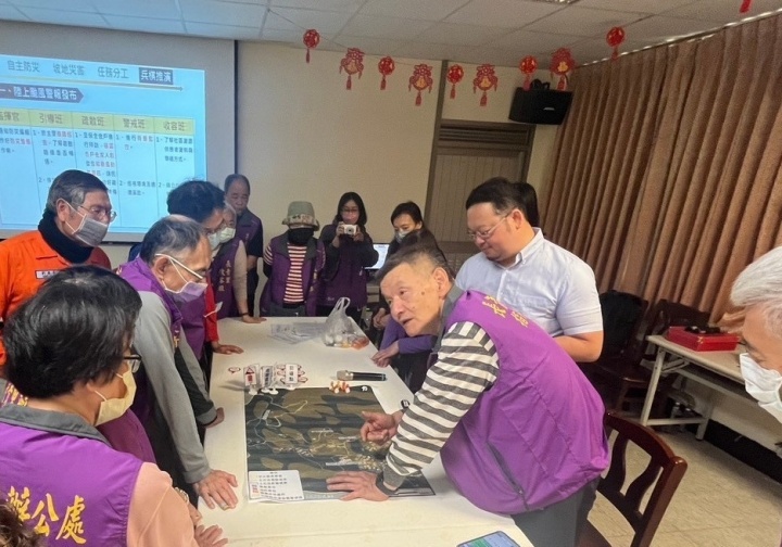 汐止長青里陳建興里長,長期投入防災工作,積極落實巡查與社區演練,帶領長青里在去(113)年榮獲「金質社區」殊榮(兵棋推演資料照)。