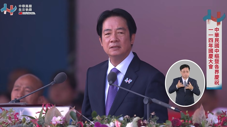 賴清德周五上午在大約半小時的國慶談話提到許多面向,在國際局勢中他指出,2025年是二次世界大戰結束80周年,目前威權主義持續擴張,國際秩序又遭遇嚴峻挑戰,台海、東海、南海的區域秩序,甚至是整個第一島鏈的安全,都受到嚴重威脅。