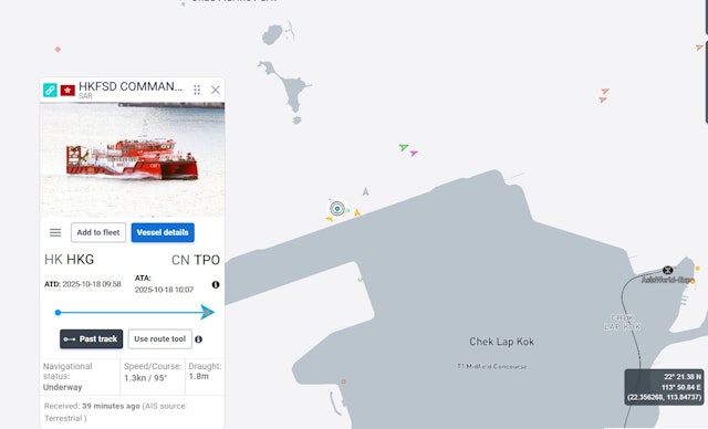 ▲多架消防船在現場海面搜救。(圖片來源:marinetraffic.com)