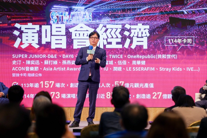 陳其邁分享「演唱會經濟」成功案例,透過智慧交通快速疏散十萬人潮,並結合低碳場館優勢,讓高雄成為國際天團亞洲首選演出城市。