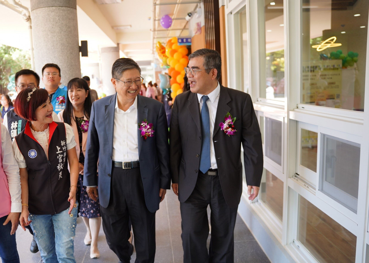 新竹縣長楊文科(左)與教育部國教署組長葉信村(右)到場參與啟用典禮。