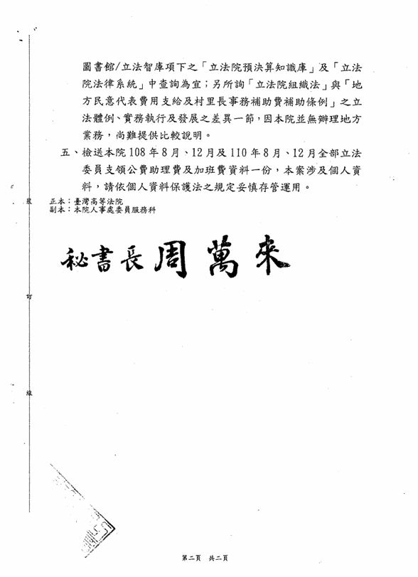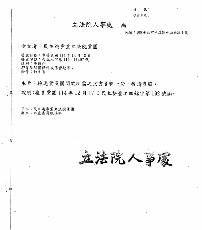 「立法院有函覆檢送法制局的專題研究報告給高院郭法官欸,而那份文件變成判決高虹安沒有貪污的重要依據。 但是我們昨天貼的公文沒有這個附件啊!請問:立法院給高等法院關於高虹安助理費案到底給過幾個公文啊」?