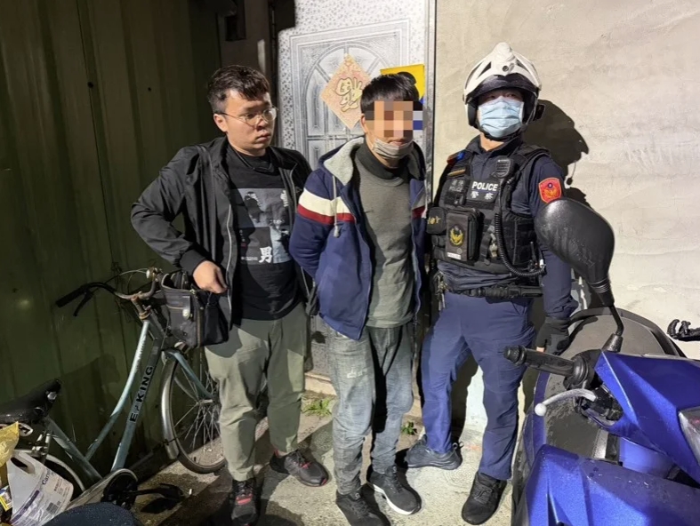 蘆洲警調閱監視器鎖定行蹤,通報新莊警協助追捕,新莊分局中平派出所警員今晚6時15分巡邏時行經新泰路261巷時,發現疑似身影立即上前盤查,在他身上查獲一把美工刀、螺絲起子、尖嘴鉗、現金1千多元,背包內還有換下來的衣物。