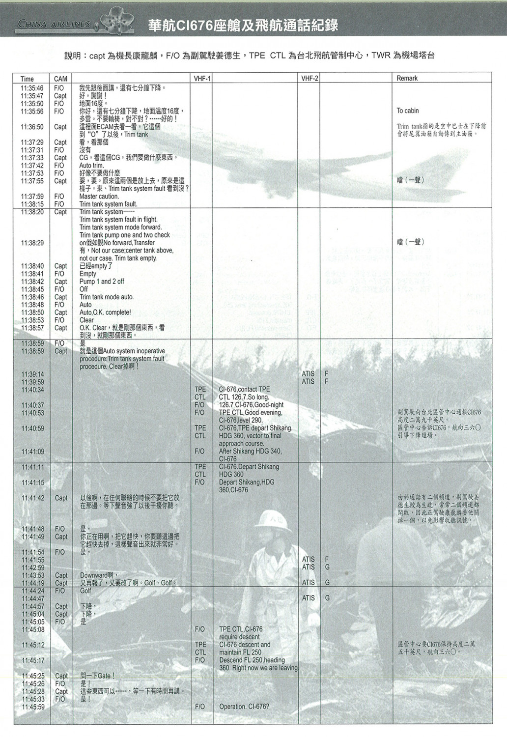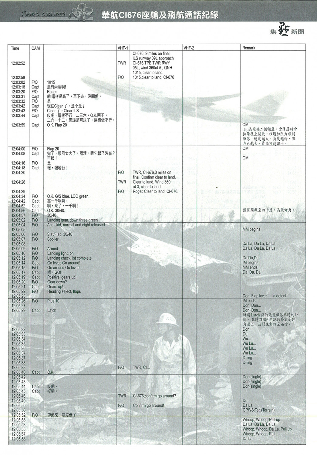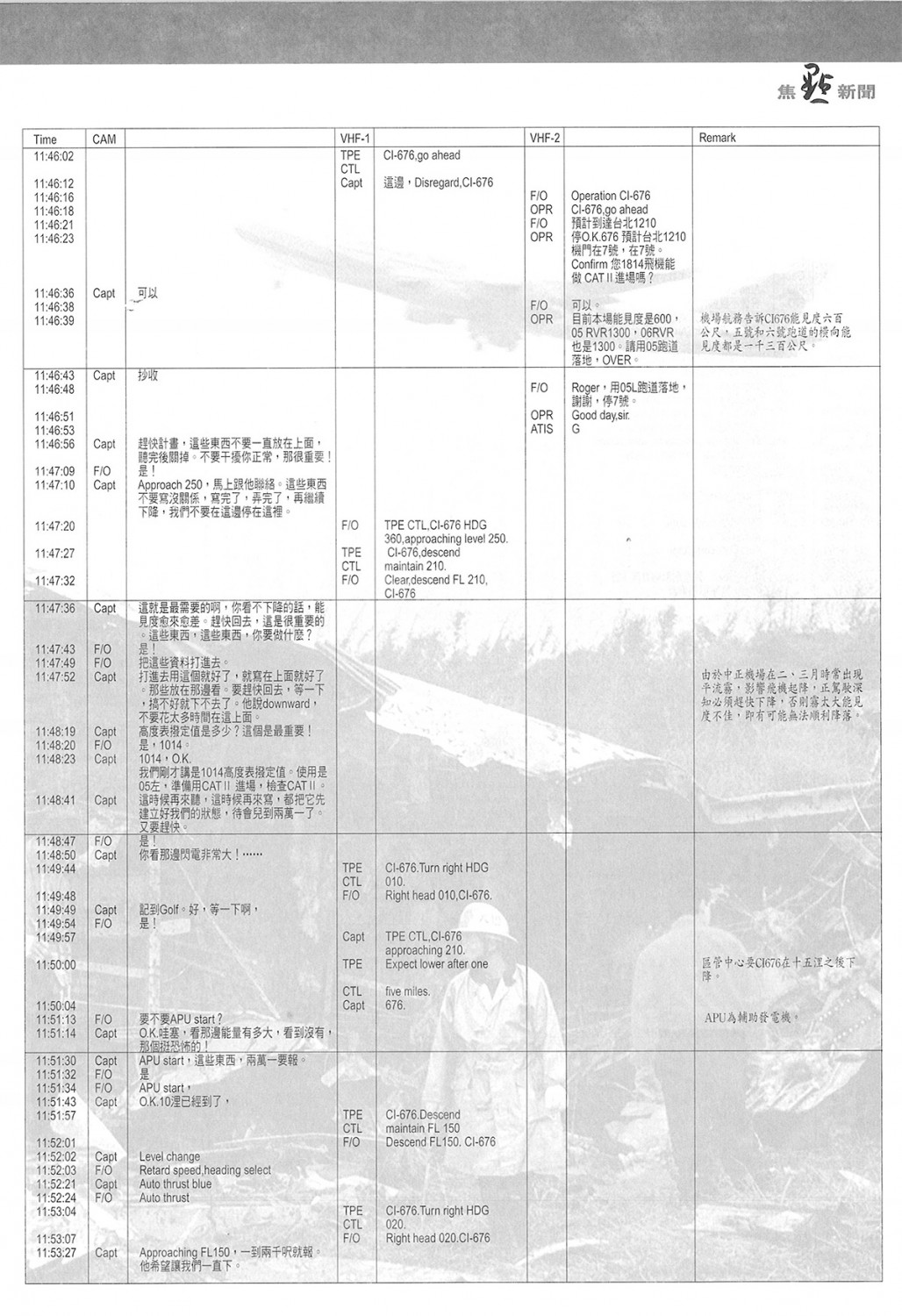 CI676墜毀前三十分鐘 通話紀錄全程整理表
