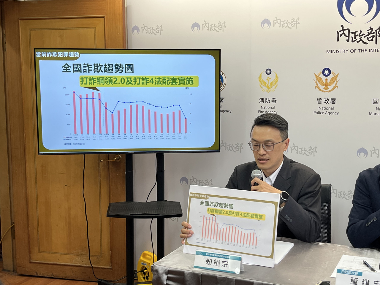 ▲詐防中心督察賴耀宗說明政府打詐成果及最新全國詐欺趨勢。林良昇攝影