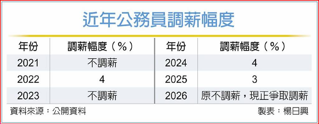 今周刊編按:73萬名軍公教加薪有譜?2026年軍公教原不調薪,現正爭取中!行政院人事總處人事長蘇俊榮周四(3/25)表示,正向行政院爭取今年軍公教調薪機會,擬在4月向卓揆報告。