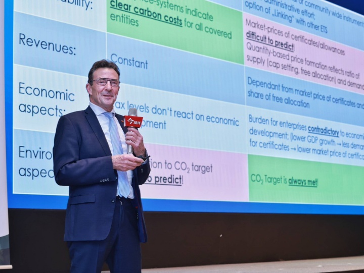 前德國環境署排放交易管理局局長 Dr. Jürgen Landgrebe 於論壇中解析碳定價與排放交易制度(ETS)設計,分享國際碳市場發展經驗。